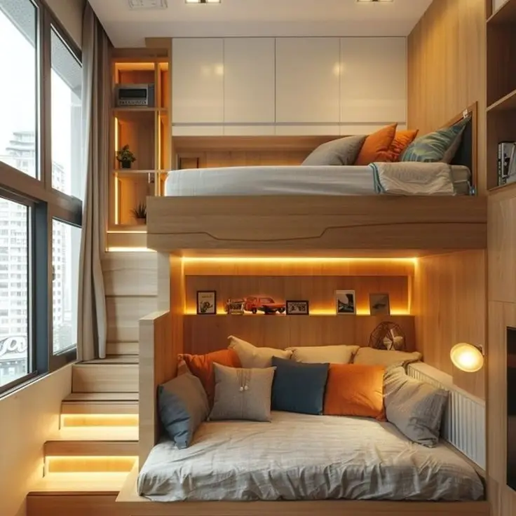 Adding elements such as a soft rug and a string of lights can make this area incredibly inviting. It’s an innovative use of vertical space that offers a private retreat within a room, ideal for reading or enjoying a moment of solitude.
