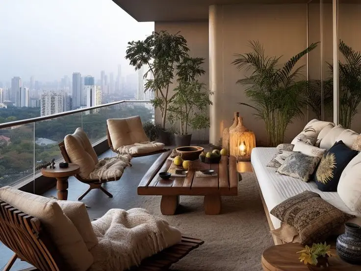Don’t let a small balcony deter you from creating an outdoor retreat. By using space-saving furniture like a small bench or hanging chair, you can turn even the tiniest balcony into a cozy nook. Soften the space with outdoor cushions, plants, and fairy lights for an enchanting escape.