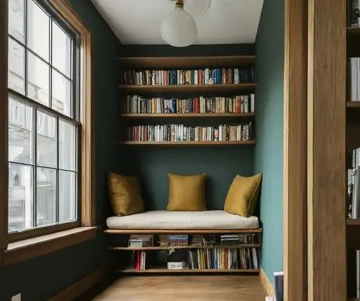 Adding comfortable home seating, adequate lighting, and a small table can turn this space into a bookworm’s paradise. It’s a practical and enchanting way to celebrate your love for books and create a special corner for reading marathons.