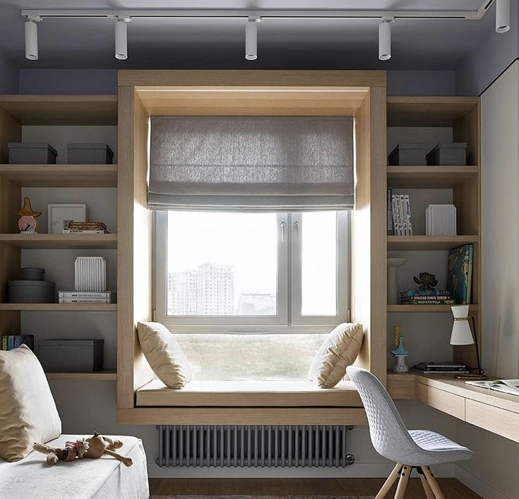 Bay windows in bedrooms are a treasure waiting to be adorned. Transform this space with a built-in bench, soft cushions, and throw pillows to create a serene nook for relaxation.